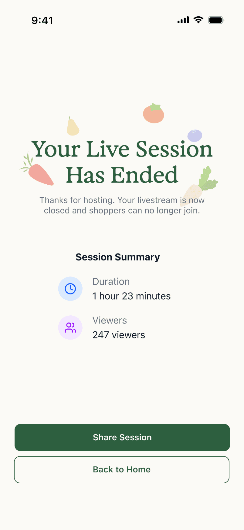 Next, we asked real users to test these low-fidelity prototypes and observed how they completed the exploration, attempted to join the live stream, created listings and verified the pick-up. Usability testing has revealed areas that can still be optimized.