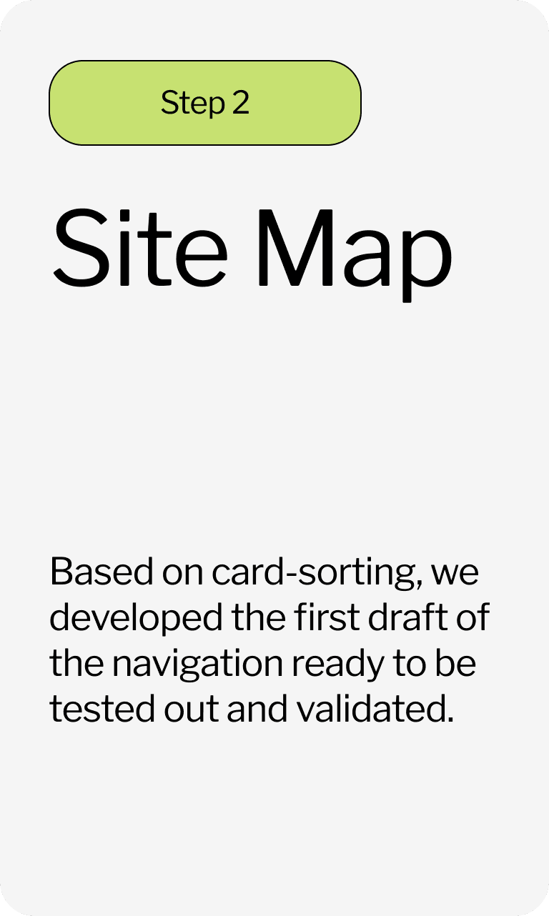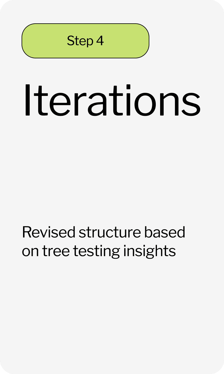 I turned research into designs: validated navigation through tree testing, optimized flows, and built low/mid-fidelity prototypes.