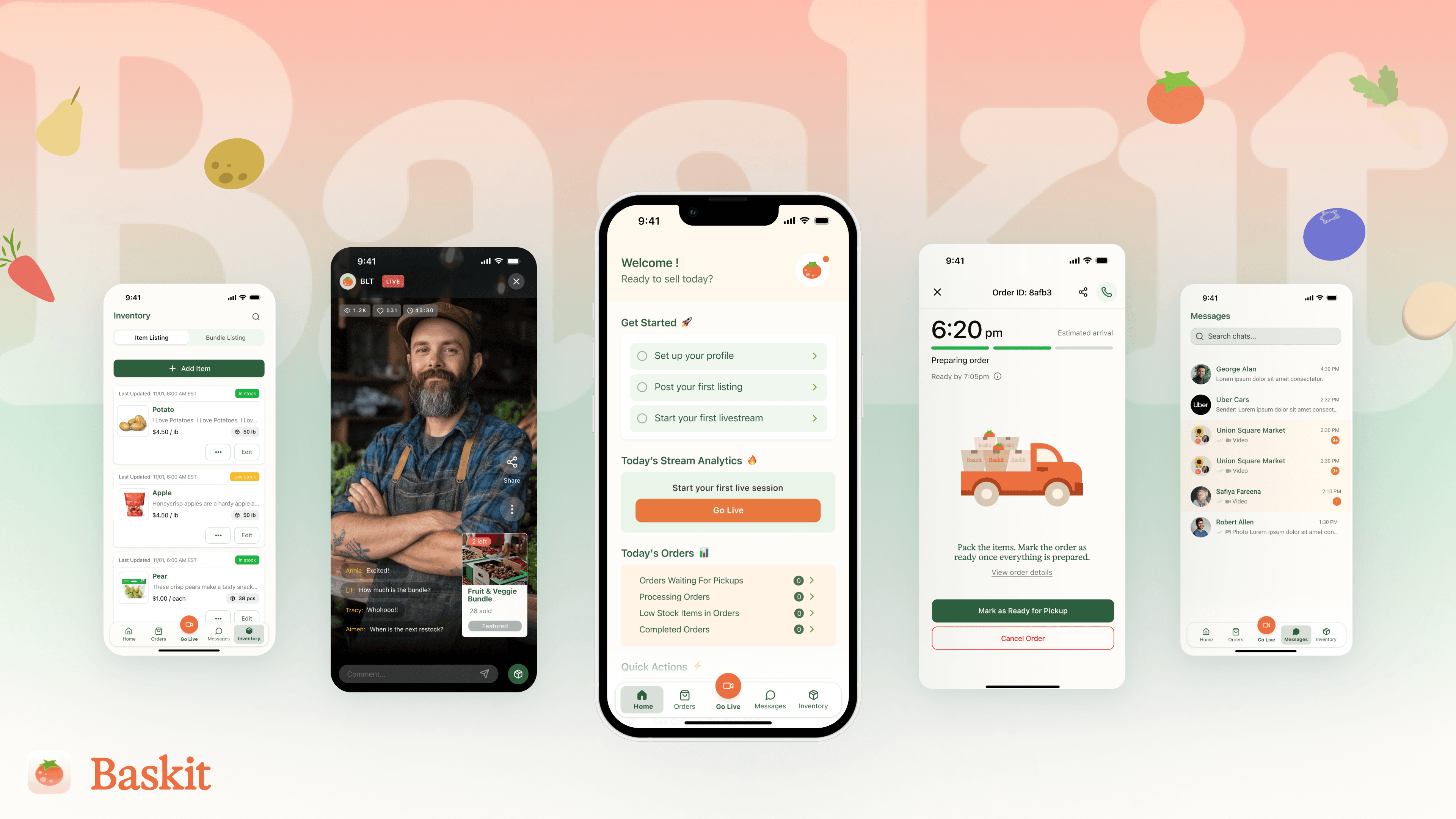 Baskit is a live shopping marketplace designed exclusively for small, hyperlocal vendors—from farmers market stall owners to hobby sellers balancing side businesses with full-time jobs. Unlike generic e-commerce platforms, Baskit centers on community-centric, in-person pickup, letting sellers broadcast live from their stalls to showcase seasonal goods, answer customer questions in real time, and streamline order management—all without the technical burden or weather-dependent risks of traditional local selling.