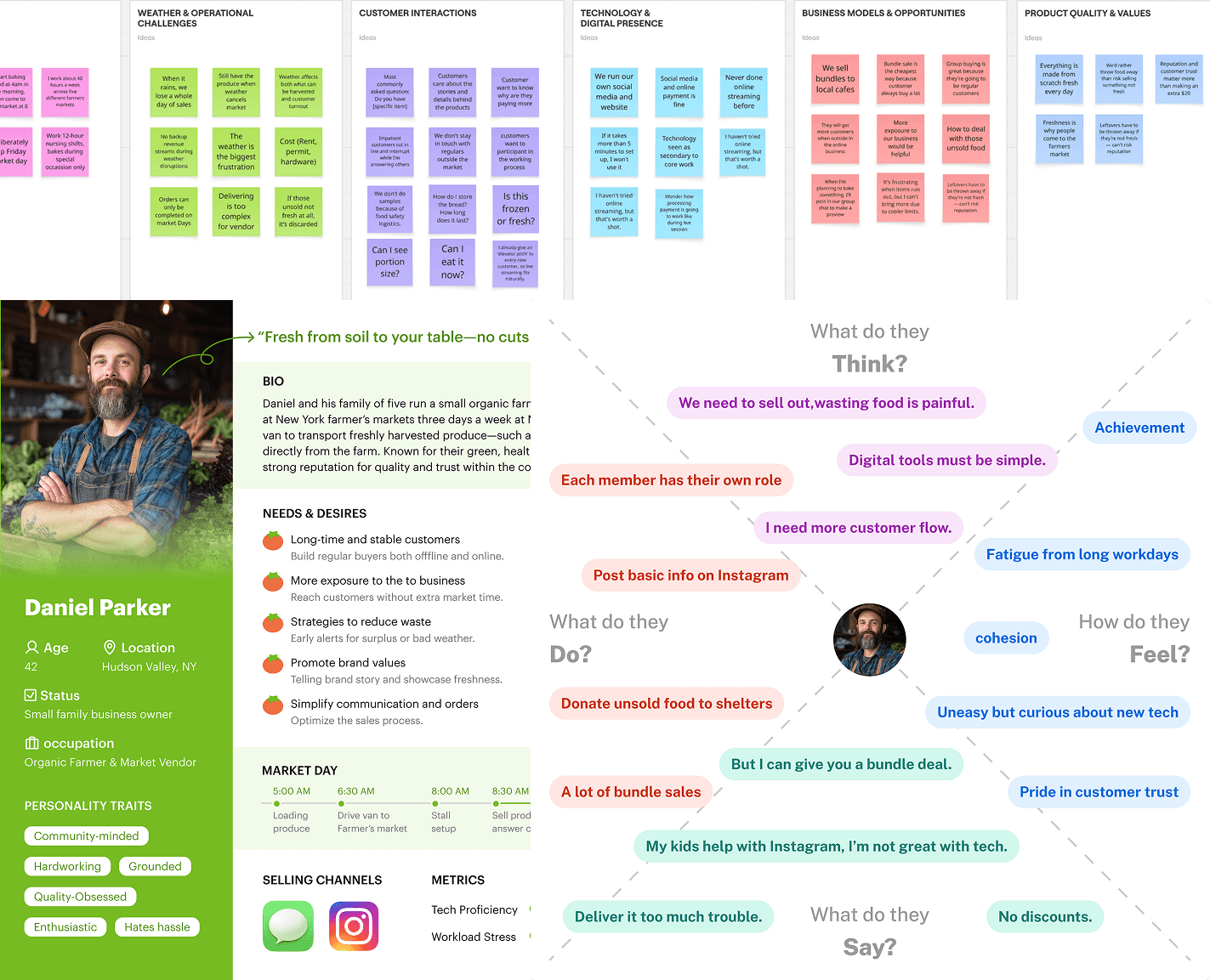 Through field visits, interviews, and card sorting, I defined the core needs of small local sellers.